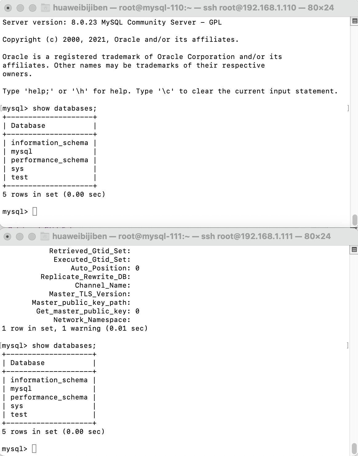 slave 192.168.1.111 mysql Ver 8.0.23 for Linux on x86_64