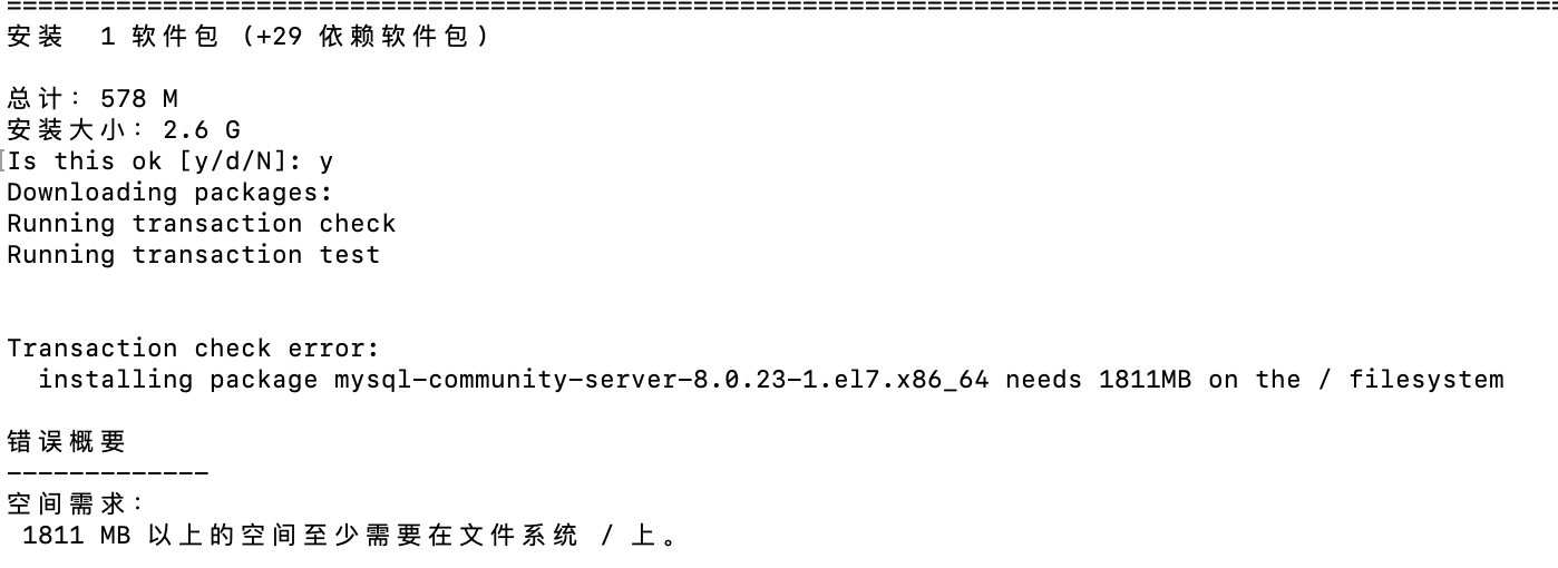 由于安装mysql空间不足