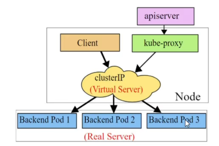 - ClusterIP:默认,kubernetes系统自动分配的虚拟ip,只能在集群内布访问