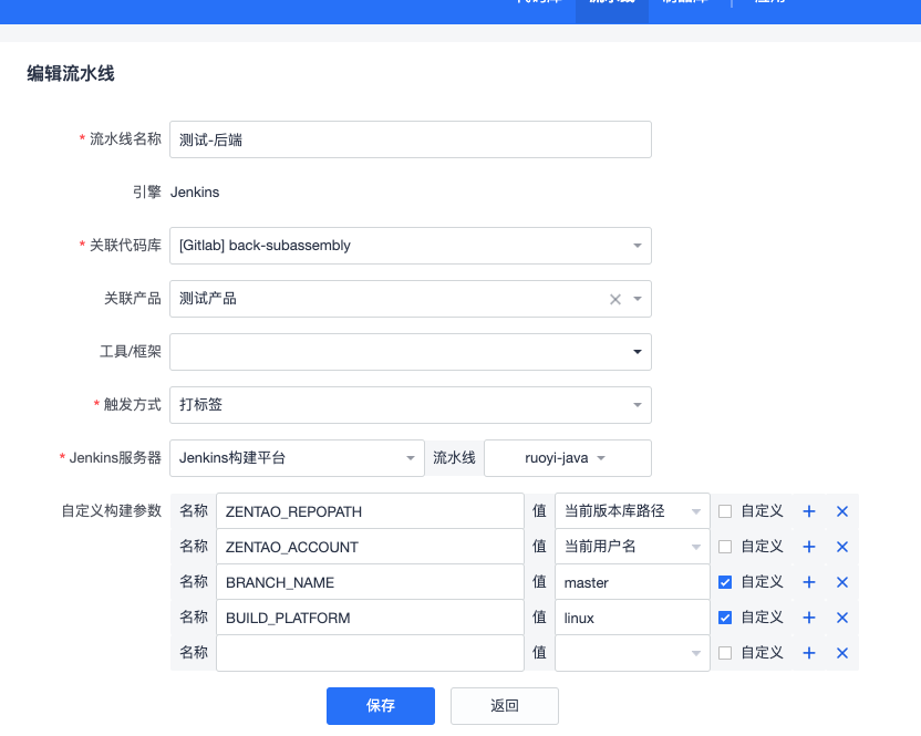 - 参数化构建:支持动态指定 SSH 用户、目标机器 IP、Docker 镜像、版本号、服务名称、端口映射和环境变量。